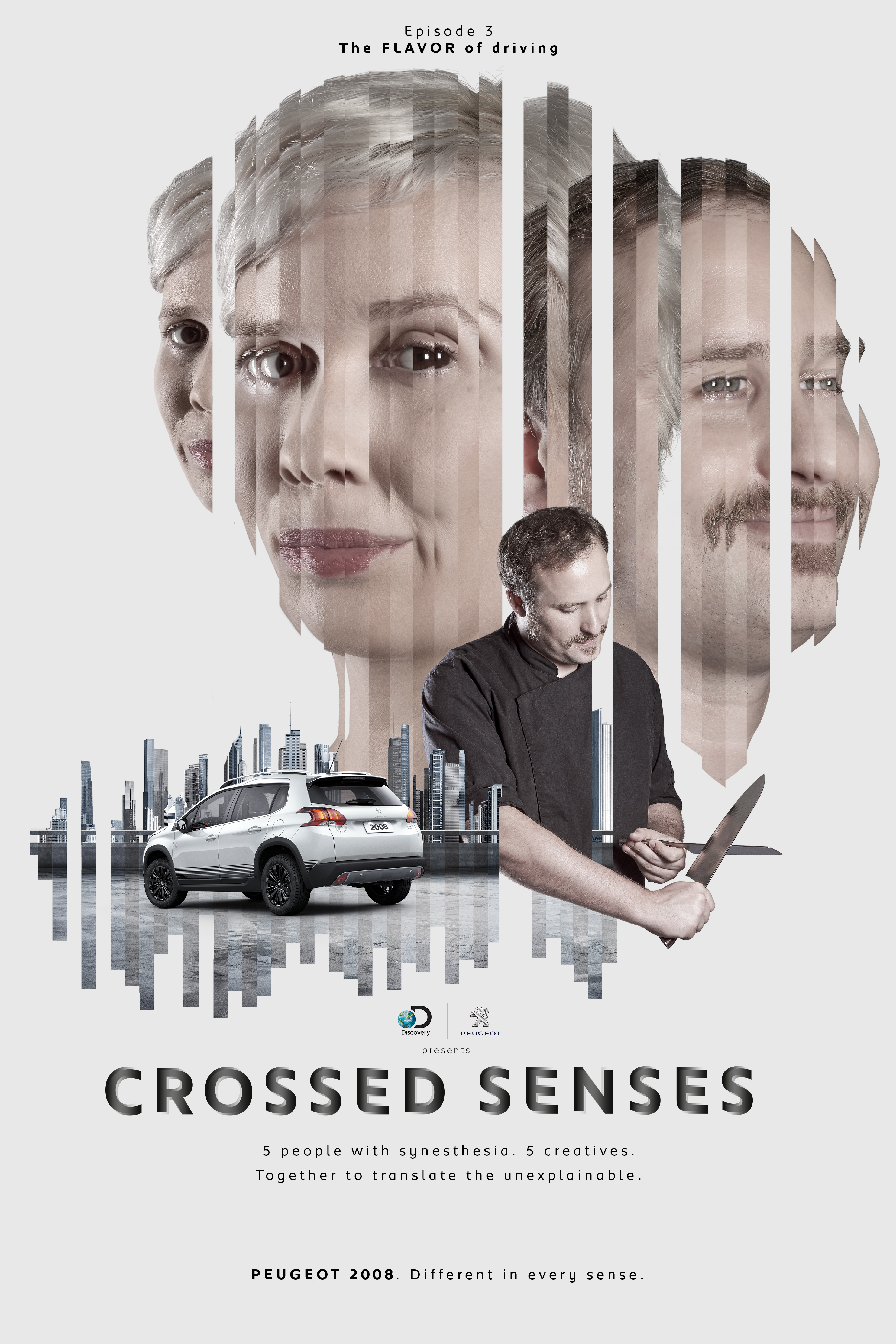 CROSSED SENSES is a documentary project where PEUGEOT, in a partnership with Discovery Channel, invited 5 persons with synesthesia to do a test-drive the new Peugeot 2008 Crossway.